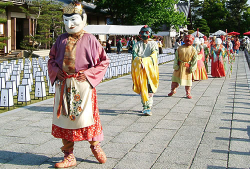 | 内 容 | 毎年5月5日に薬師寺玄奘三蔵会にて演じられる伎楽。本年は約20年ぶりに衣装が新調され、今回も染司よしおかが約4年の月日をかけ制作致しました。リハーサルから準備、本番当日までカメラが入りました。お時間ございましたら是非ご覧くださいませ。 【番組内容】 およそ1400年前、唐からインドまでシルクロードを旅して「大般若経」を持ち帰った三蔵法師こと玄奘三蔵。その玄奘三蔵を始祖とする法相宗の大本山が世界遺産の薬師寺である。 寺内の玄奘三蔵院には玄奘三蔵の遺骨が納められ、平山郁夫画伯が「大唐西域壁画」を奉納している。ここでは毎年5月、玄奘三蔵の功績を讃えるための大祭『玄奘三蔵会』が行われる。『玄奘三蔵会』は、長きに渡って途絶えていたが、次世代への継承をねらいとして平成4年に復活し、玄奘三蔵のインドへの旅を描いた幻の伝統演劇『伎楽』を中心に繰り広げられる。 2014年の大祭は玄奘三蔵没後1350年という節目であるとともに、110年ぶりに解体修理を行っている東塔の無事祈願を兼ねており、薬師寺にとってこれまで以上に大きな意味を持つ。神聖な“門外不出の儀式”であった伎楽。これまで決して入ることが許されなかったこの伎楽の大祭は、衣裳、染色、仮面や経典などの小物、作法や儀礼に至るまで、遠くシルクロードの様式を汲んでいる。丁度、シルクロードは世界遺産に登録されたばかりだ。 かつてない規模で執り行われる2014年の大祭。これまでは玄奘三蔵院で800人ほどの観客の前で行われていたが、今回は薬師如来が鎮座する金堂と弥勒菩薩が収められている大講堂の間に巨大なステージを組み、2000人の観客を集めて催された。更に、従来は5月5日のみの開催であったが、今回は4、5日と2日に渡って行われた。大祭の伝統継承にかける人々の思いと挑戦。次世代への絆。リハーサルから準備、本番当日の臨場感あふれる現場に初めて独占取材のカメラが入った。 |